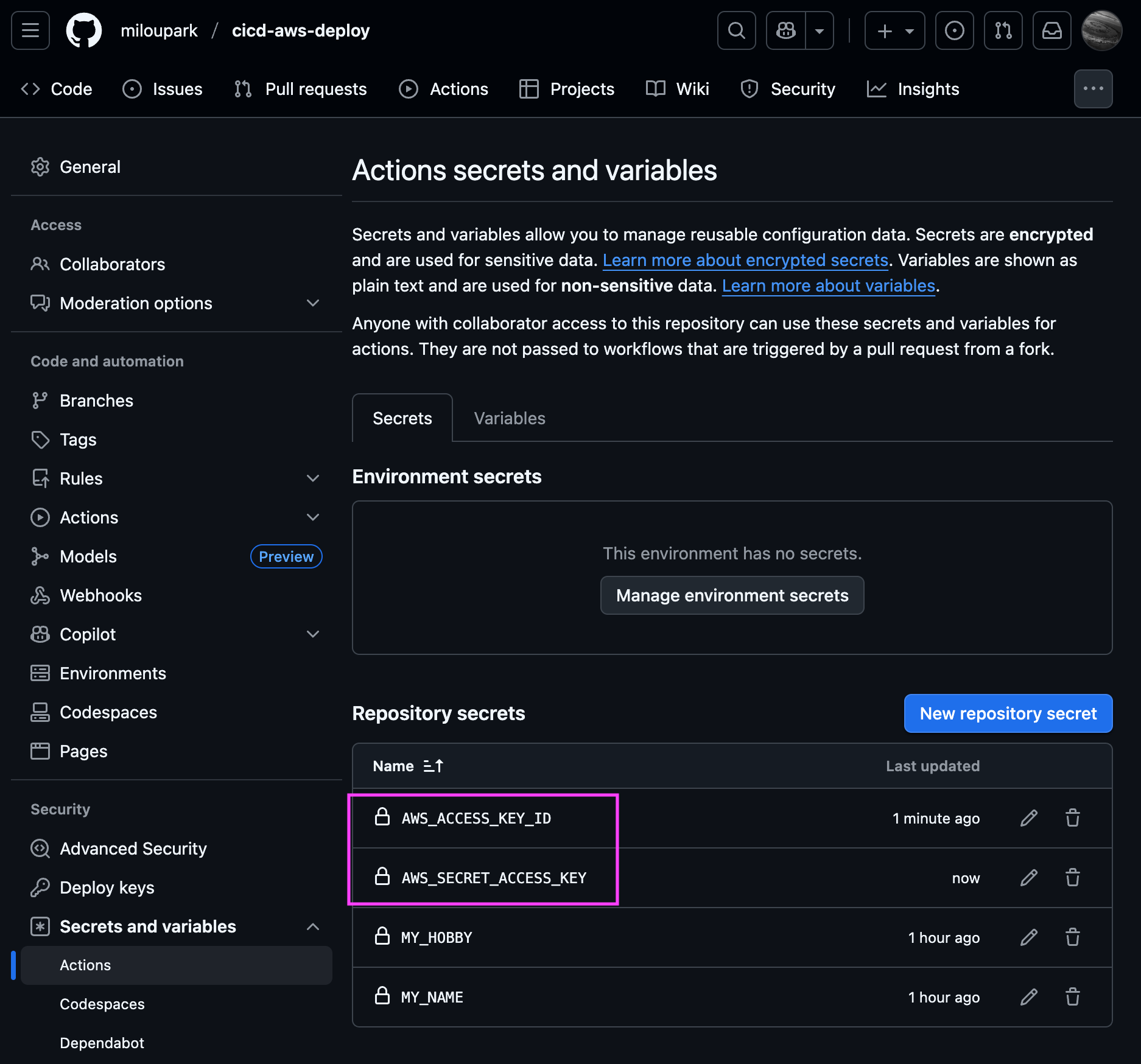 ↳ IAM에서 발급한AWS_ACCESS_KEY_ID