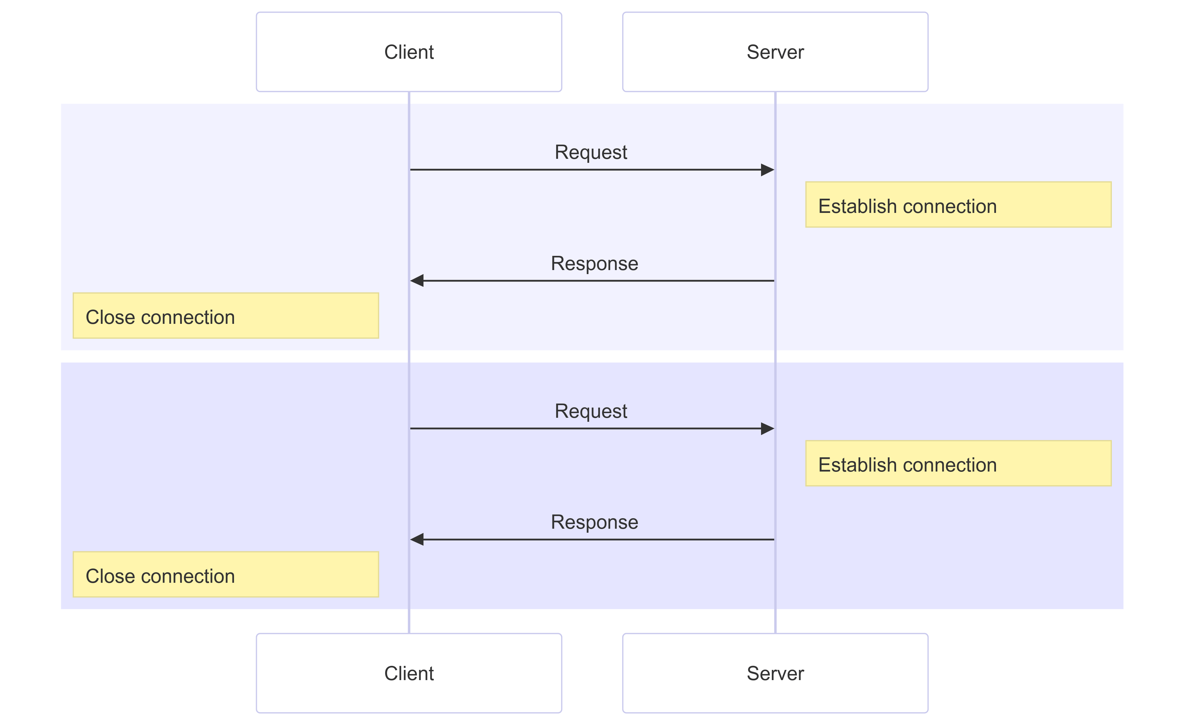 - HTTP๋ ์์ฒญ์ด ์์ด์ผ ์๋ตํ๋ stateless ๋ชจ๋ธ์ด๋ค.