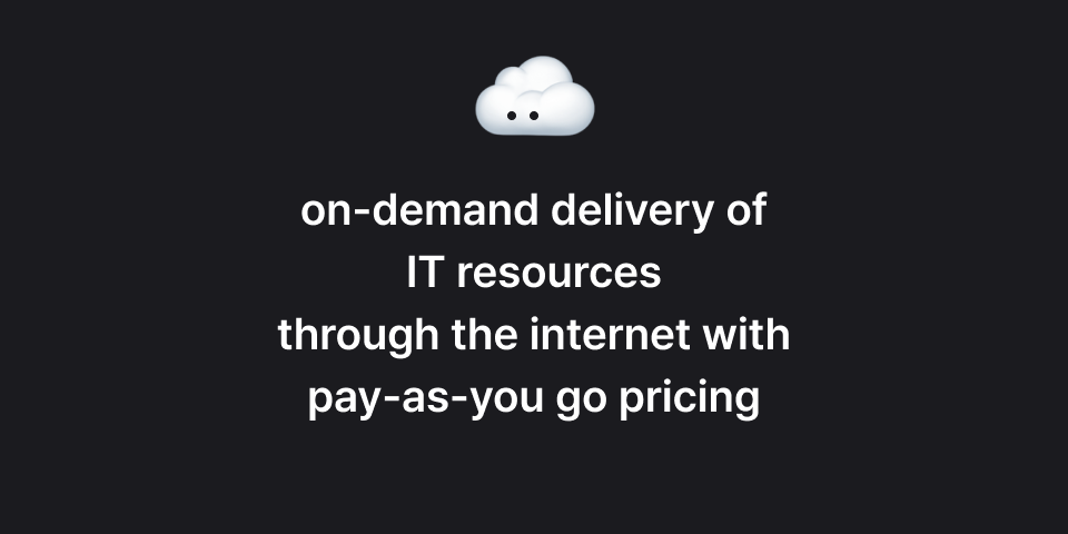 사용자는 서버, 스토리지, 데이터베이스, 네트워크 같은 IT 자원을 직접 구매·설치하지 않고, 쓴 만큼 비용을 지불하는 방식으로 이용할 수 있다.