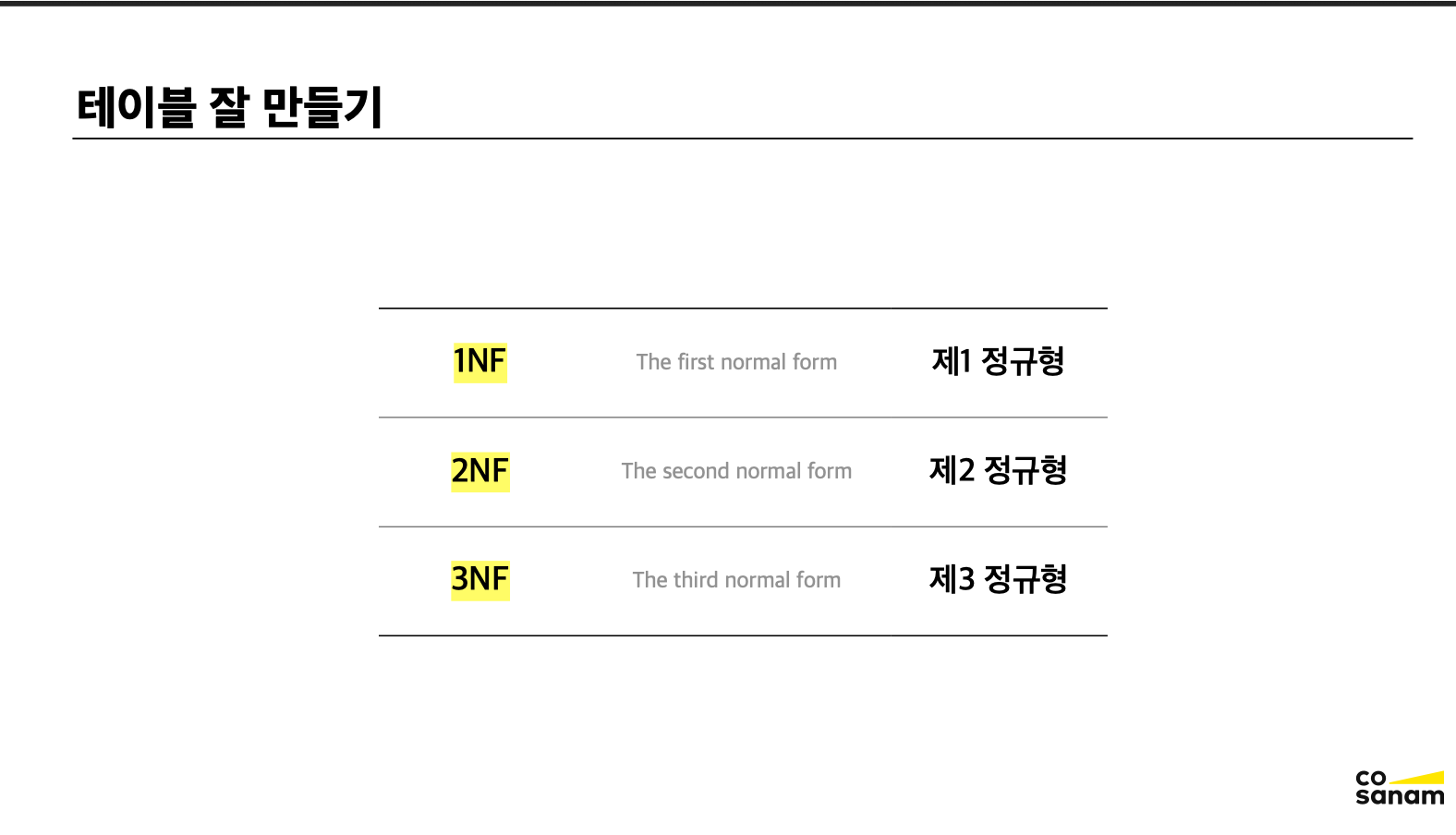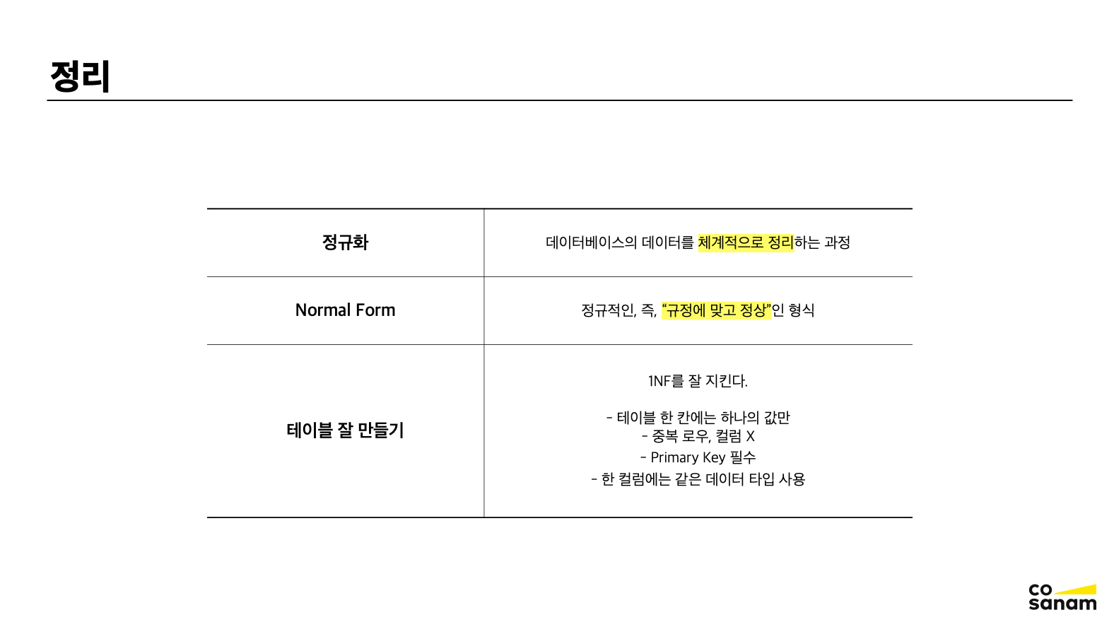 정규화란 데이터베이스의 데이터를 체계적으로 정리하는 과정이다.