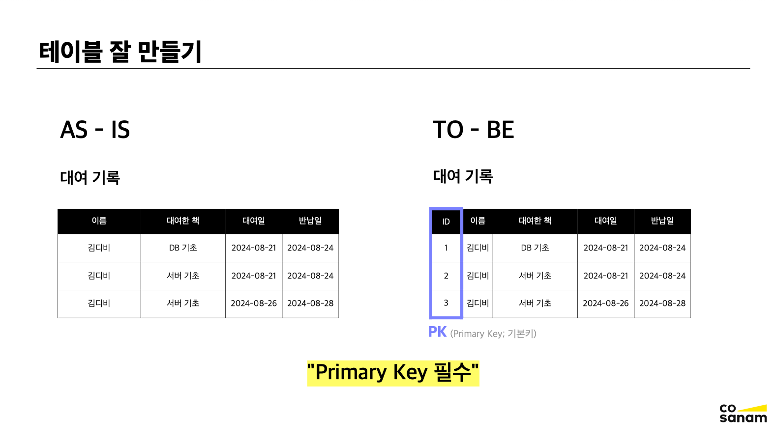 제1 정규형은 테이블을 어떻게 잘 구성하는 지에 대한 내용이기 때문에, 준수하는 것이 좋다.