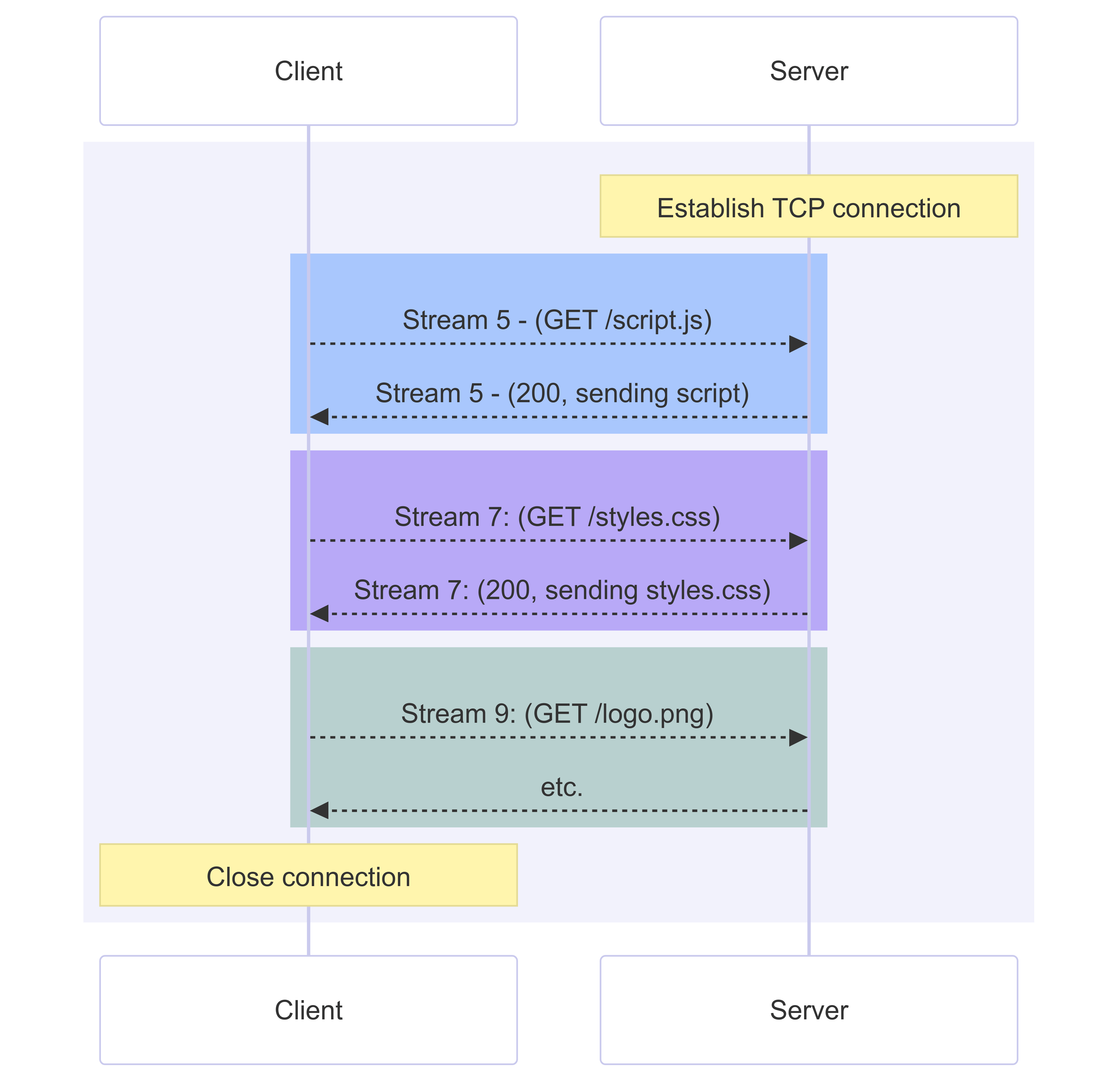 - ํ ๋ฒ์ TCP ์ฐ๊ฒฐ ์์์ ์ฌ๋ฌ ์์ฒญ์ ๋ณ๋ ฌ๋ก ๋ณด๋