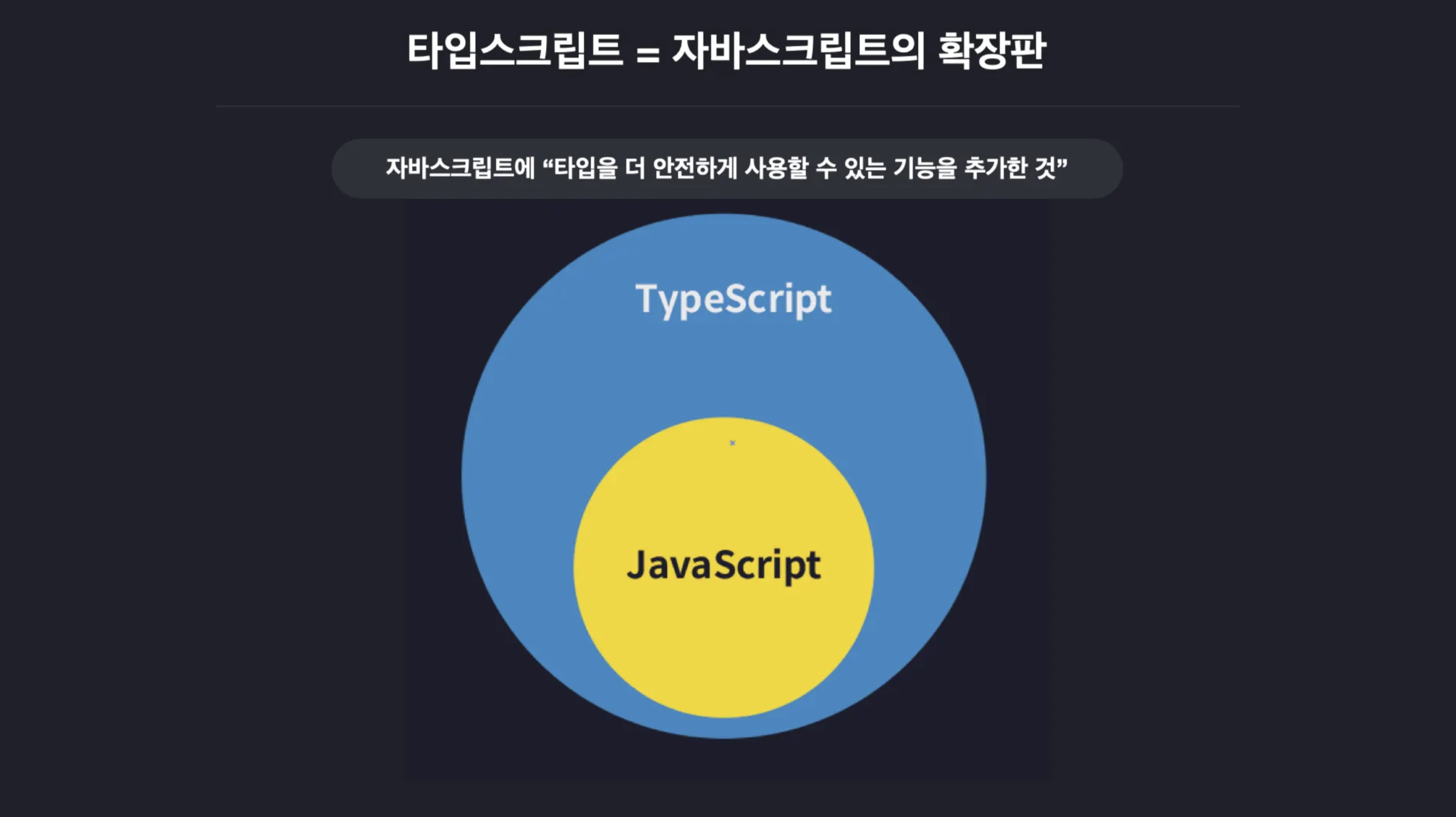 💡 TypeScript는 자바스크립트를 대체하지 않고 확장한다.